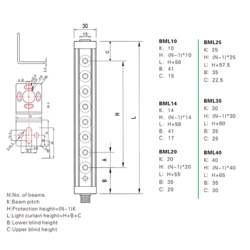 Излучатель: 4-полюсный кабель, приемник: 5-полюсный кабель