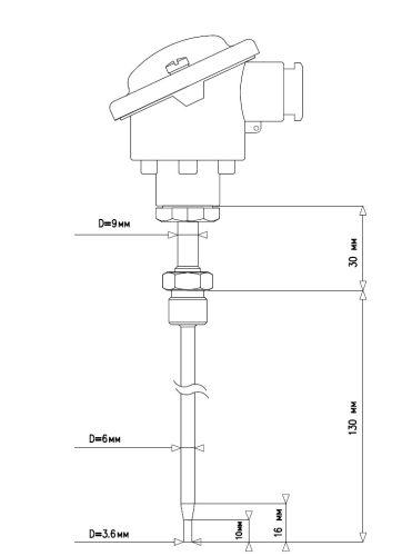 Сужение измерительного зонда на конце для уменьшения времени отклика при изменении температуры среды