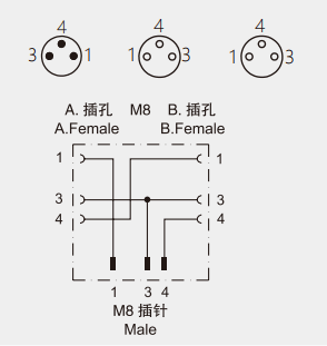 1хM8 / 4 пин (папа) на 2хM8 / 3 пин (мама)